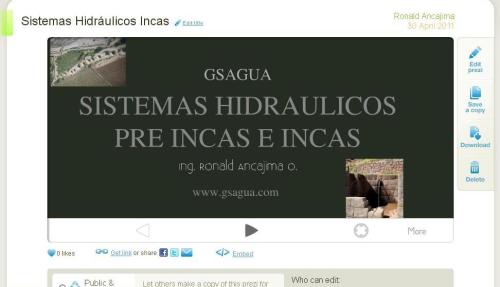 Invito a las múltiples personas que siguen este espacio utilizar www.prezi.com y ver una aplicación práctica con: Sistemas Hidráulicas Pre Incas e Incas