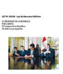 Ley 29338 de Recursos Hídricos en el Perú, aprobada el 31 de Marzo del 2009,