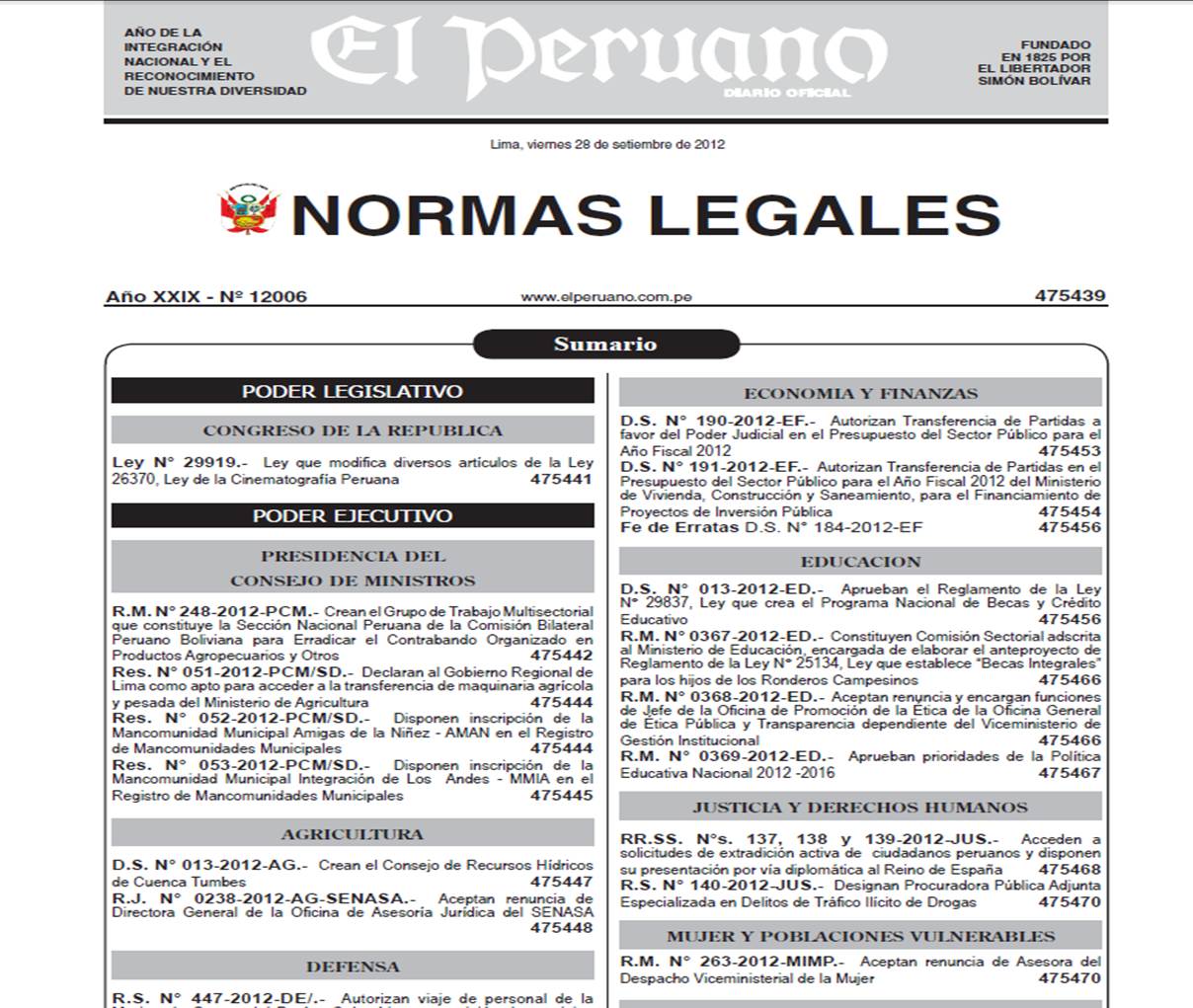 CRHC tumbes creado con: DS 013-2012 CRHC Tumbes de fecha 28 de Septiembre del 2012
