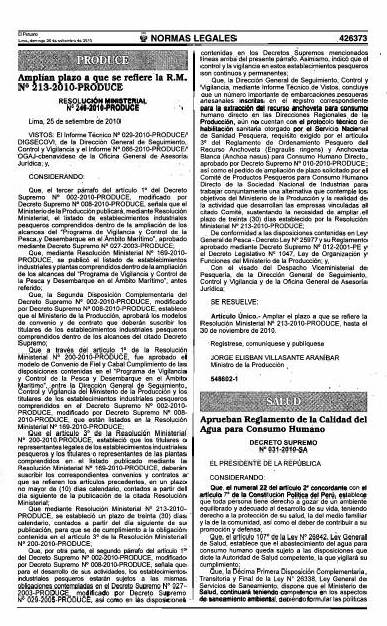 D.S. 031-2010-SA (26/09/2010) que aprueba el reglamento de la calidad del agua para consumo humano