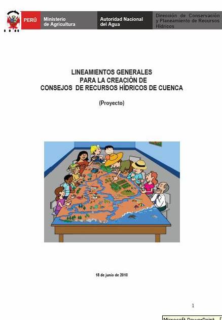 Política y Estrategia Nacional de los Recursos Hídricos en el Perú, actualizado por la ahora Autoridad Nacional del Agua – ANA en Abril del 2009