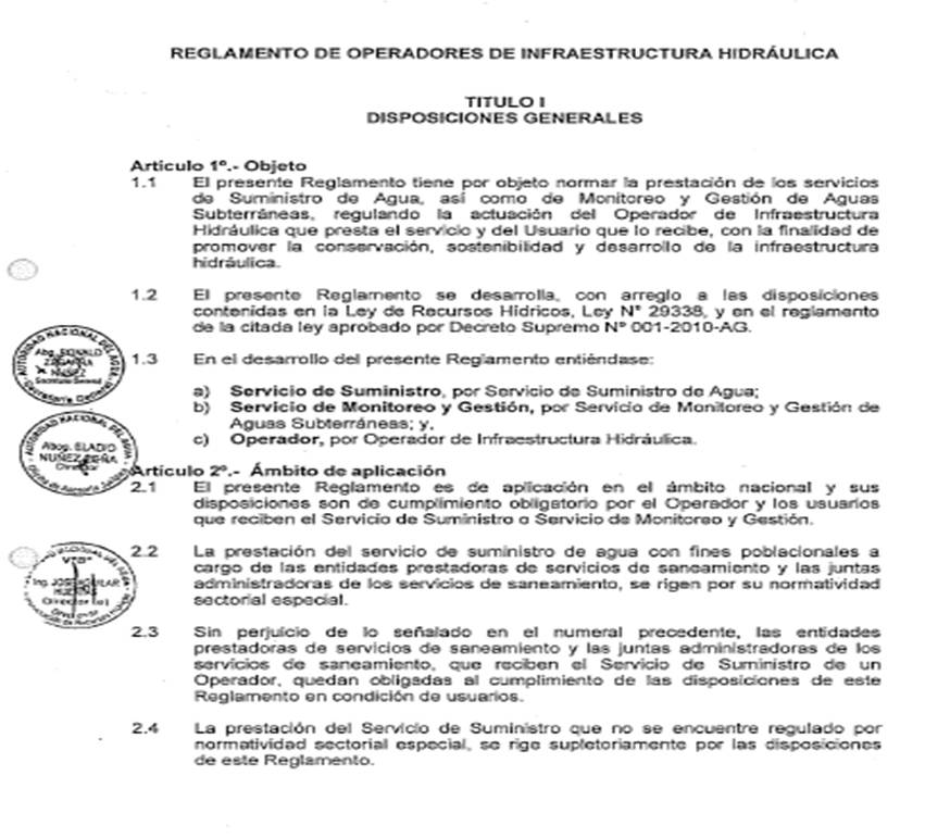 La Autoridad Nacional del Agua (ANA) aprobó el Reglamento de Operadores de Infraestructura Hidráulica