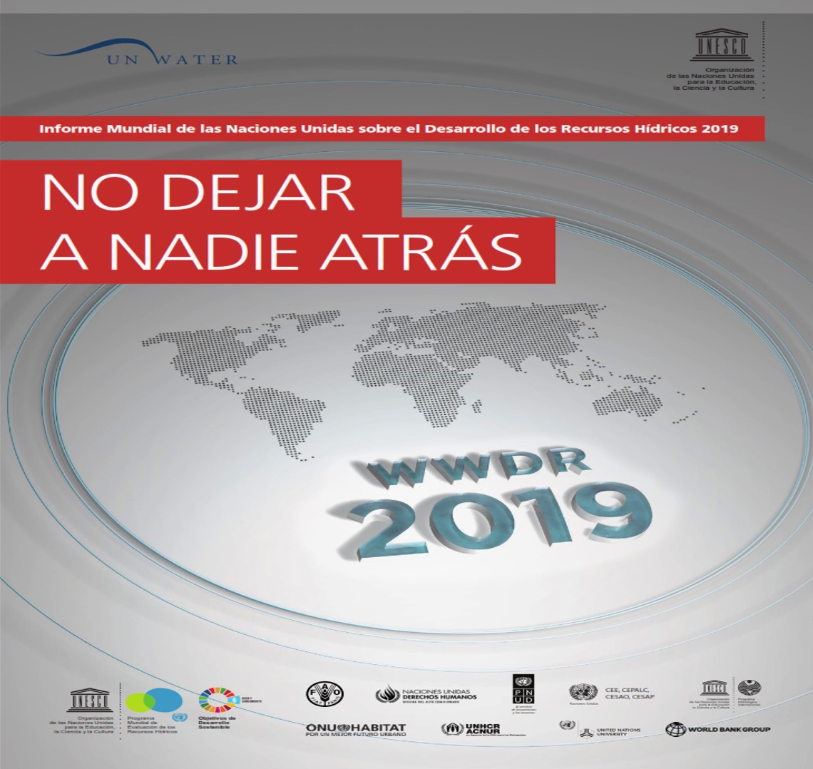 La edición del 2019 del Informe Mundial sobre el Desarrollo de los Recursos Hídricos se titula «No dejar a nadie atrás» y pretende informar a los responsables de políticas y de toma de decisiones, tanto dentro como fuera de la comunidad hídrica, sobre como la mejora en la gestión de recursos hídricos y el acceso al suministro de agua y a los servicios de saneamiento son esenciales para combatir la pobreza construir sociedades más prosperas y pacíficas, y asegurar que nadie se quede atrás en el camino hacia el desarrollo sostenible. El informe se presentó en el Consejo de Derechos Humanos el 19 de marzo 2019 en el Palais des Nations en Ginebra (Suiza).