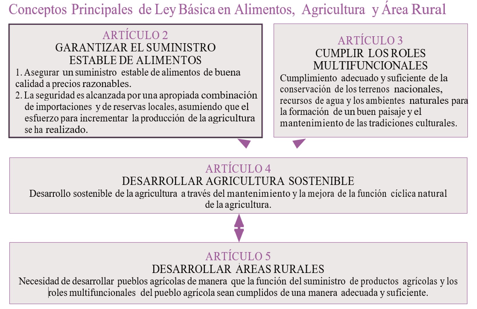 Consideremos las políticas para la agricultura y el desarrollo rural en las áreas de colinas y montañas del Japón. La característica interesante en la reformas de sus leyes fue precisamente el reglamento de un nuevo concepto principal para “Cumplir los roles multifuncionales que la agricultura y el área rural tienen/sirven para varios beneficios de la población y el territorio nacional”. Basándose en esta evaluación, las nuevas políticas dadas en Japón para financiar e incentivar con fin de cumplir sus objetivos han creado varios tipos de financiamiento y servicio del Estado como los siguientes (Fuente: Hidráulica Inca):