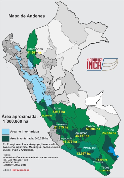 Se estima que el potencial real supera el millón de hectáreas de andenes, capaces de maximizar el uso del agua en zonas altoandinas y diversificar la producción agrícola.