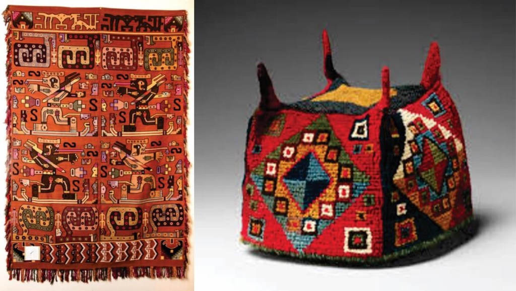 Los textiles, elaborados con lana de camélidos y algodón, presentan técnicas avanzadas como el tapiz de doble urdimbre y brocados finísimos. Estas prendas funcionaron como marcadores de rango e instrumentos diplomáticos del Estado (Stone-Miller, 1992).
