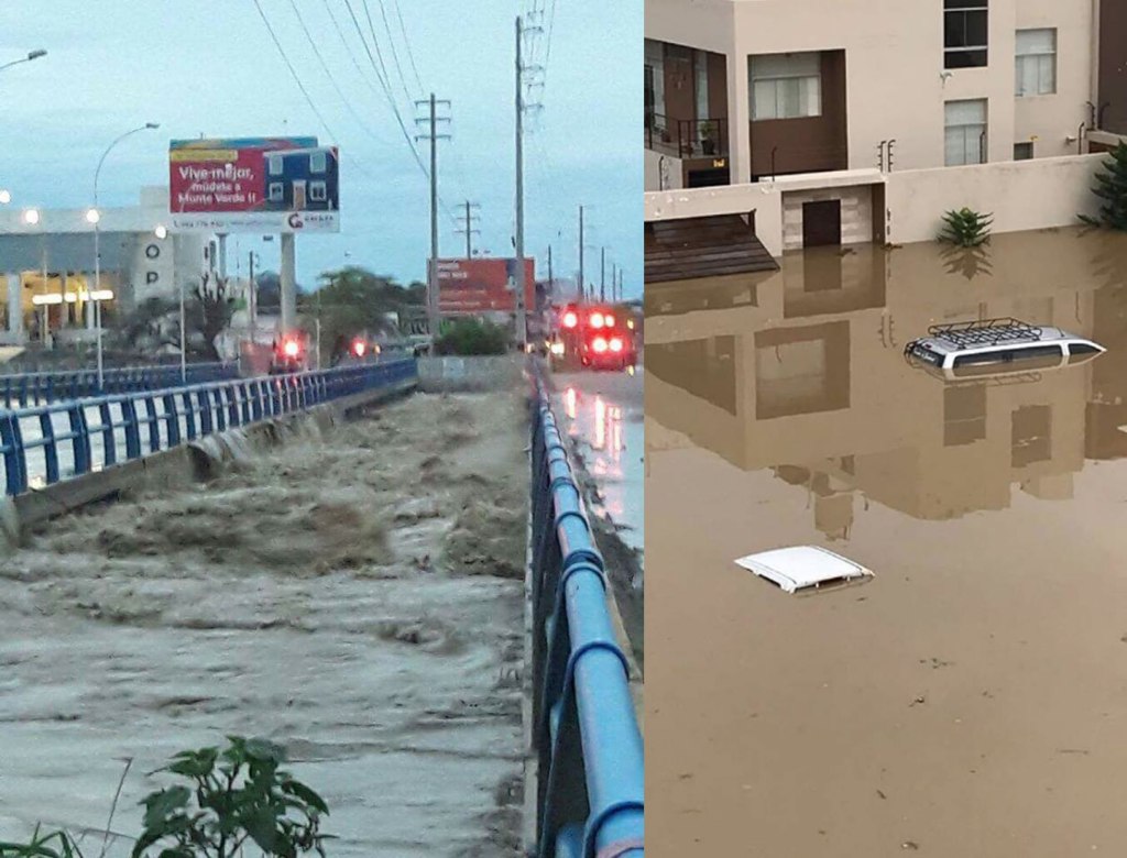 Piura soporta lluvias torrenciales probablemente más de 60 mm. El agua ha invadido la ciudad.