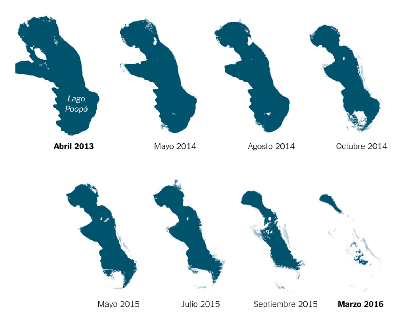 Tras sobrevivir a décadas de desvíos de agua e inundaciones cíclicas ocasionadas por fenómenos como El Niño, el lago Poopó simplemente desapareció en diciembre.