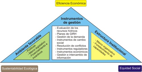 La Asociación Mundial para el Agua (GWP) ha identificado 13 áreas clave de cambio en la Gestión Integrada de los Recursos Hídricos (GIRH) dentro de la gobernabilidad general del agua que, juntas, conforman el proceso de movimiento hacia un enfoque más integrado de la gestión del agua. Estas áreas clave de cambio están definidas dentro de un marco que se caracteriza por tres factores: ambiente favorable, estructura institucional e instrumentos de gestión.