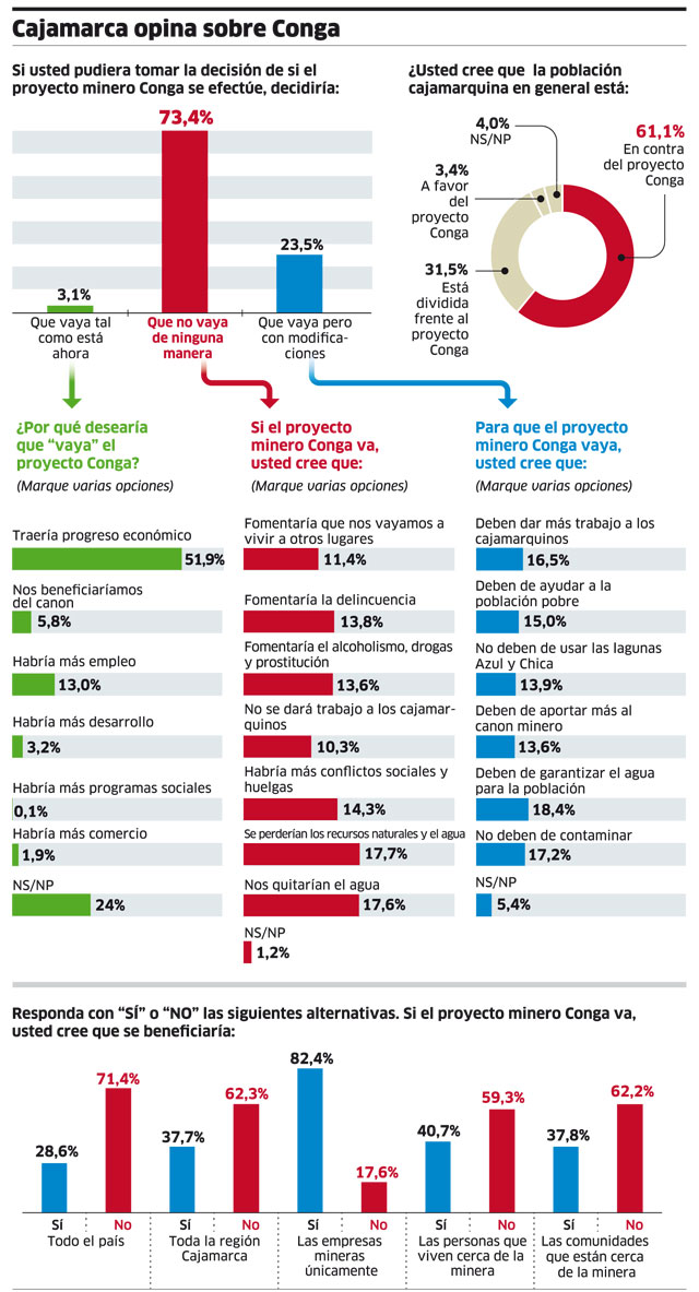 Por mi parte apuesto por una acción conjunta de todos los aspecto antes señalados con una industria responsable, entre ellas la minería, con funcionarios probos, con desarrollo de capacidades en los lideres que gerencien el desarrollo de la región, con líderes visionarios, población mejor informad…y no solo el CONGA NO VA.