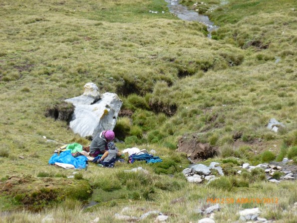 En esos gélidos parajes nos topamos con una mujer que lava su ropa acompañada de su hijo quien no debe superar los dos años, soportando las mas extremas condiciones de vida. Este escenario es común y se repite en muchas de las punas que conocemos, en donde se piensa muchas veces en dotarles de mejores condiciones de vida al ganado que a la población, con la diferencia que no estamos en Castrovirreyna, Apurimac o Ayacucho estamos encima de Lima a solo tres horas de Huaral.