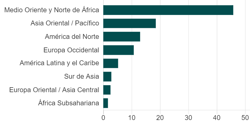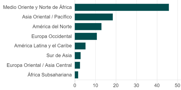 El gran factor limitante de la desalinización es que requiere grandes cantidades de energía. Y ello explica en parte por qué algunas de las mayores plantas se encuentran en países ricos en recursos energéticos como Arabia Saudita.