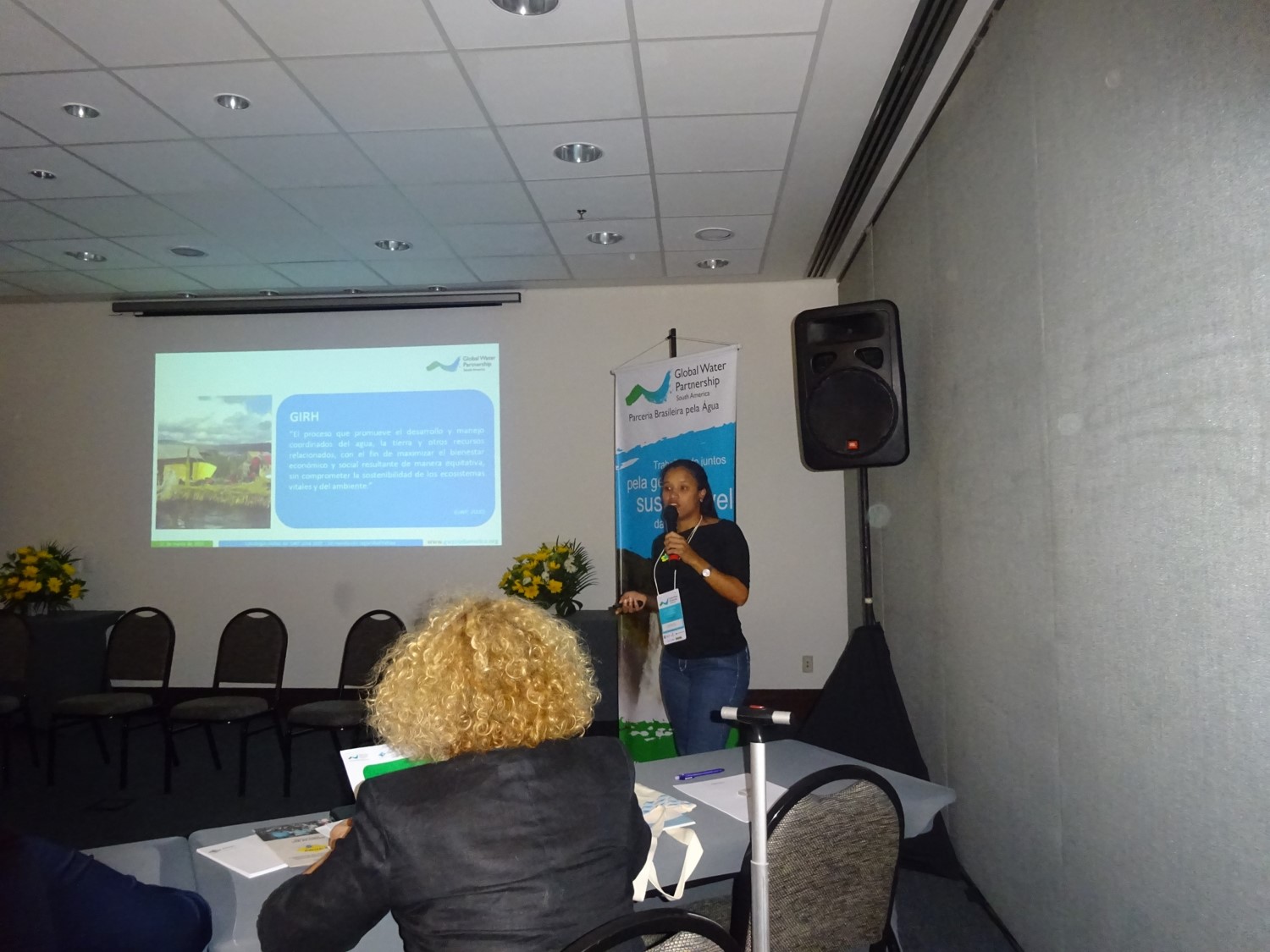Yazenia Frontado, Presidente de GWP Sudamérica, quien señaló los objetivos del taller y el trabajo que desarrolla la GWP en Sudamérica, además invitó a todas las instituciones y organizaciones a que formen parte de GWP, de manera libre y voluntaria.
