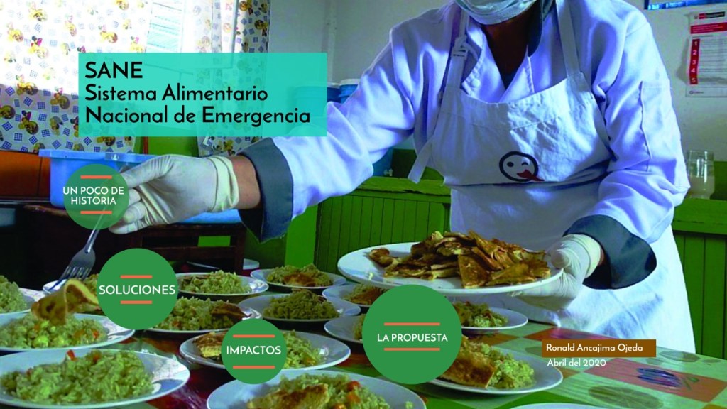 Basado en estas experiencias de carácter nacional y por la expansión de la actual pandemia, proponemos un sistema de asistencia alimentaria, que tenga por objetivo que la gente no salga a buscar sus alimentos, sino que los alimentos vayan donde ellos. El Sistema Alimentario Nacional de Emergencia (SANE) busca además que se activen actores de la producción claves: La pequeña y mediana agricultura, la pequeña y mediana ganadería, la pesca artesanal con el fin de asegurar la alimentación en los pobladores de las ciudades, produciendo con estándares de cumplimiento riguroso para una producción libre de coronavirus.